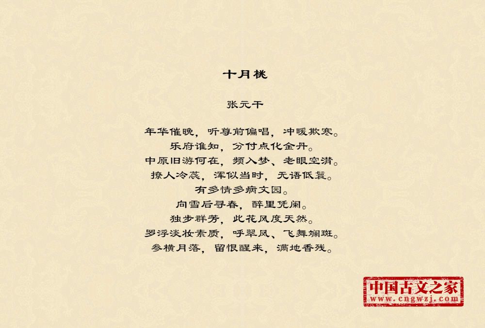 年华催晚,听尊前偏唱,冲暖欺寒。乐府谁知,分付点化金丹。中原旧游何在,频入梦、老眼空潸。撩人冷蕊,浑似当时,无语低鬟。有多情多病文园。向雪后寻春,醉里凭阑。独步群芳,此花风度天然。罗浮淡妆素质,呼翠凤、飞舞斓斑。参横月落,留恨醒来,满地香残。
