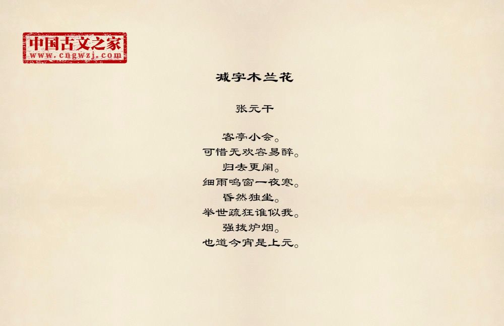 客亭小会。可惜无欢容易醉。归去更阑。细雨鸣窗一夜寒。昏然独坐。举世疏狂谁似我。强拨炉烟。也道今宵是上元。