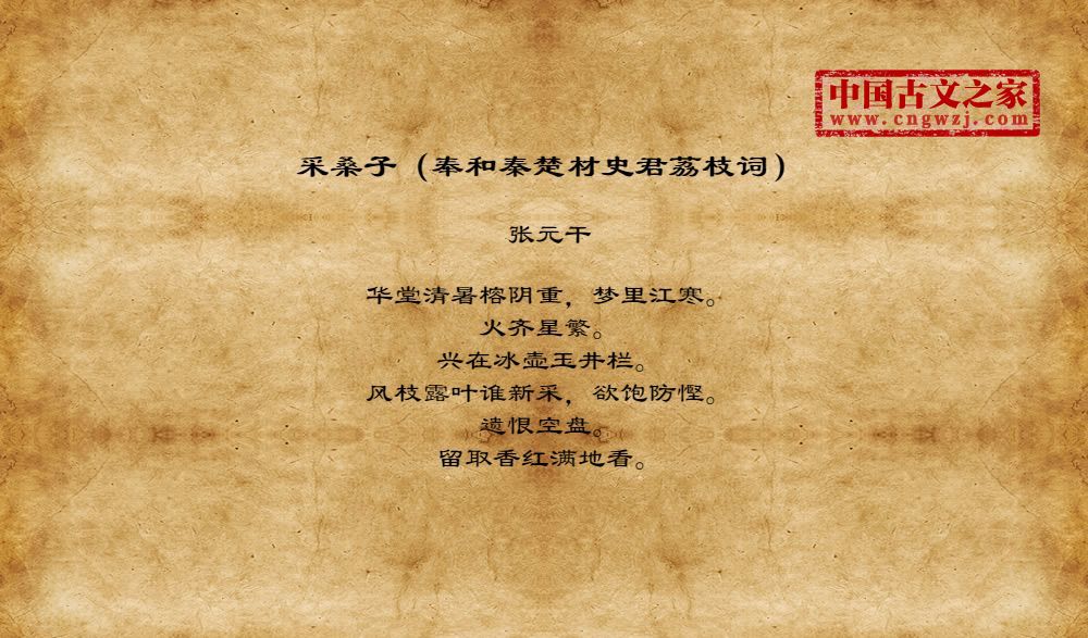 《采桑子(奉和秦楚材史君荔枝词)》的原文打印版(张元干)