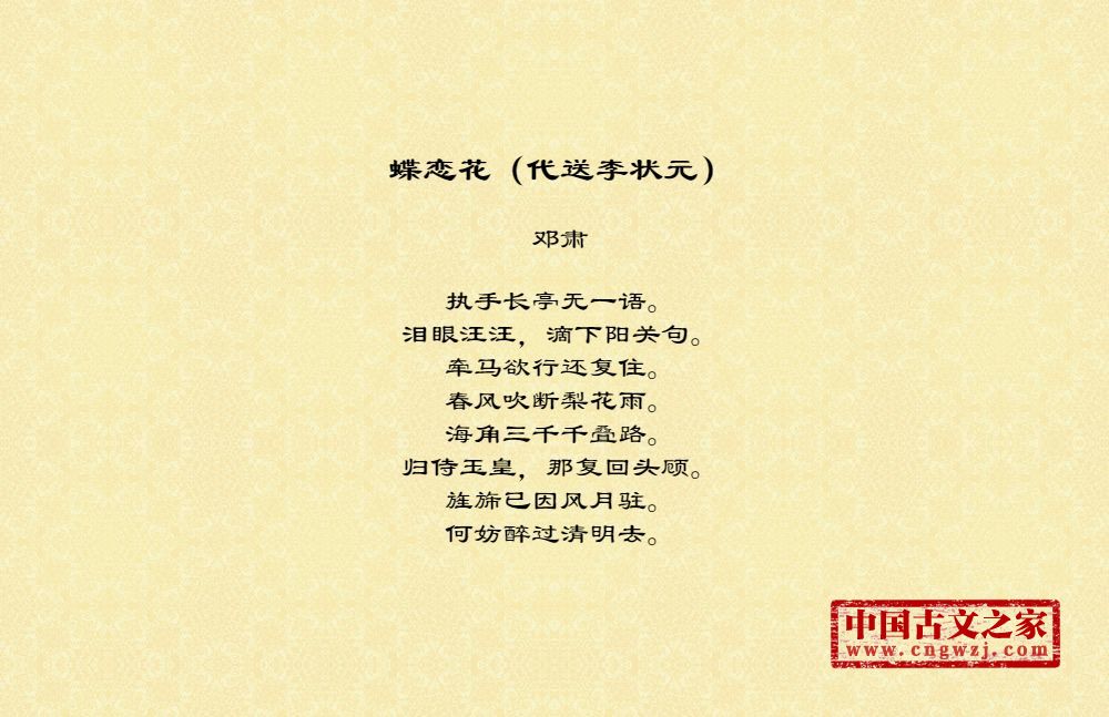 《蝶恋花(代送李状元)》的原文打印版(邓肃)