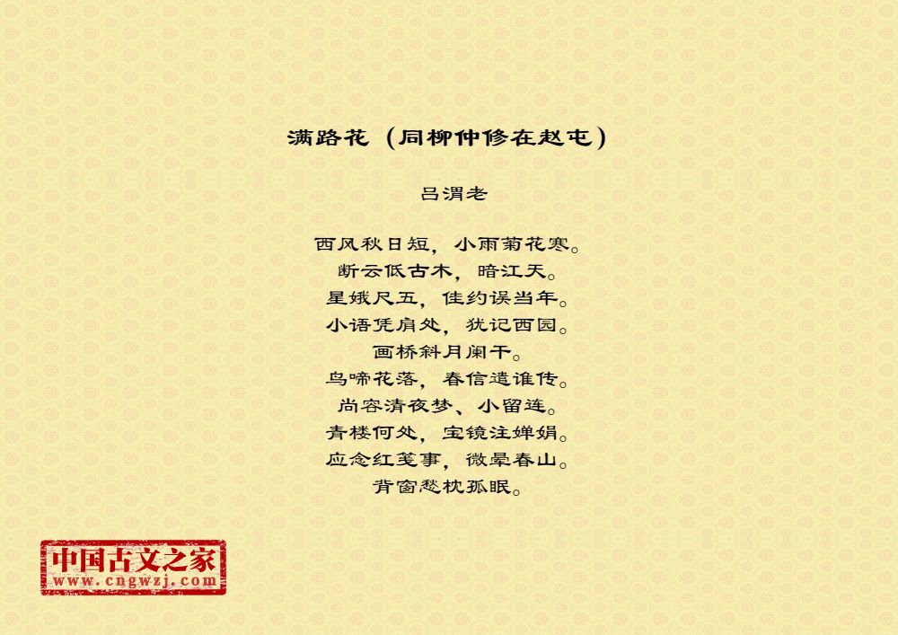 《满路花(同柳仲修在赵屯)》的原文打印版(吕渭老)