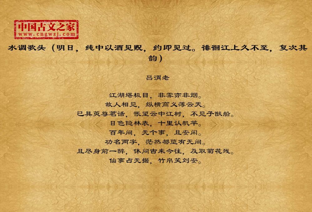 《水调歌头(明日,纯中以酒见贶,约即见过。徘徊江上久不至,复次其韵)》的原文打印版(吕渭老)
