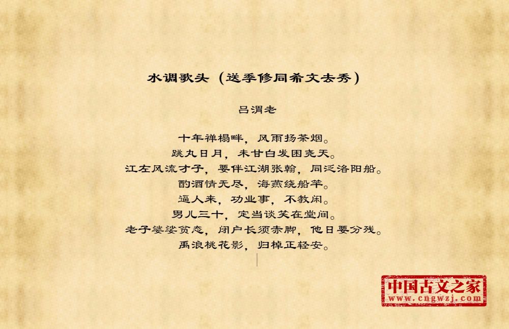《水调歌头(送季修同希文去秀)》的原文打印版(吕渭老)
