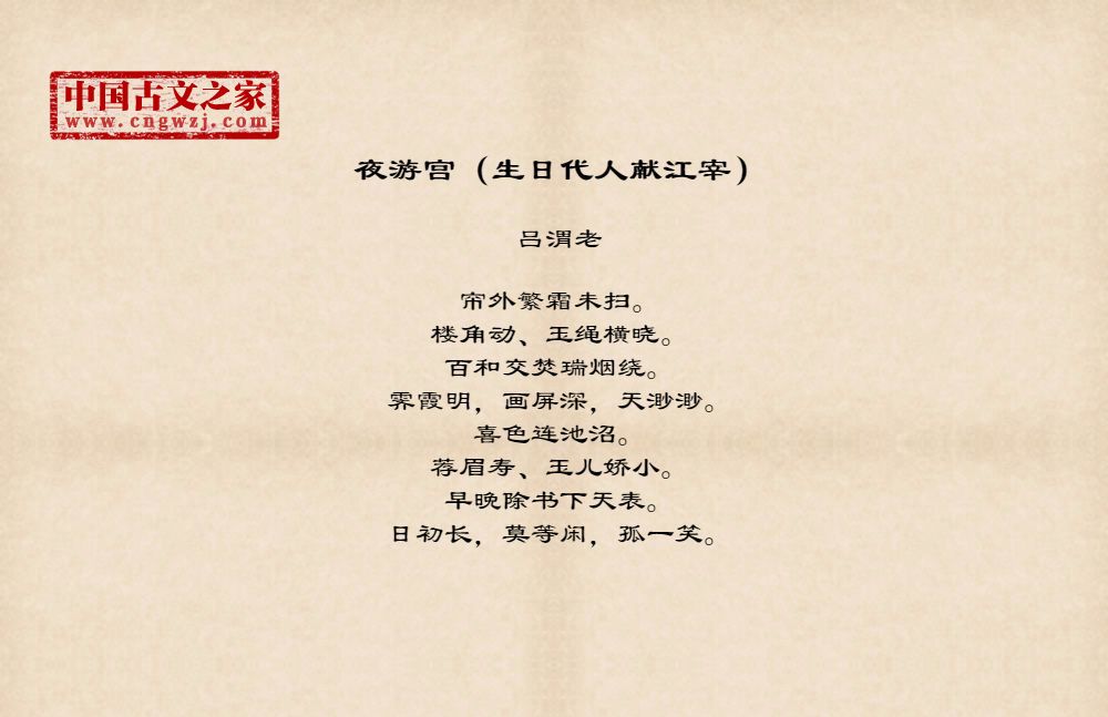 《夜游宫(生日代人献江宰)》的原文打印版(吕渭老)