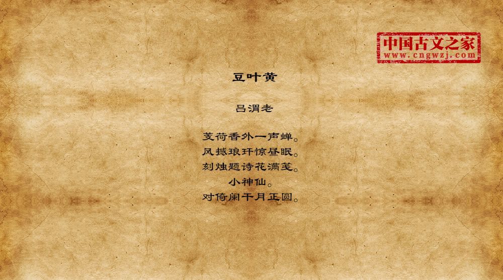 芰荷香外一声蝉。风撼琅玕惊昼眠。刻烛题诗花满笺。小神仙。对倚阑干月正圆。