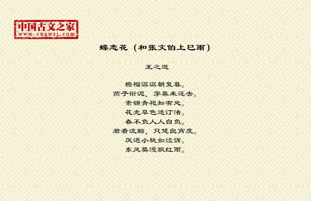 蝶恋花(和张文伯上巳雨)