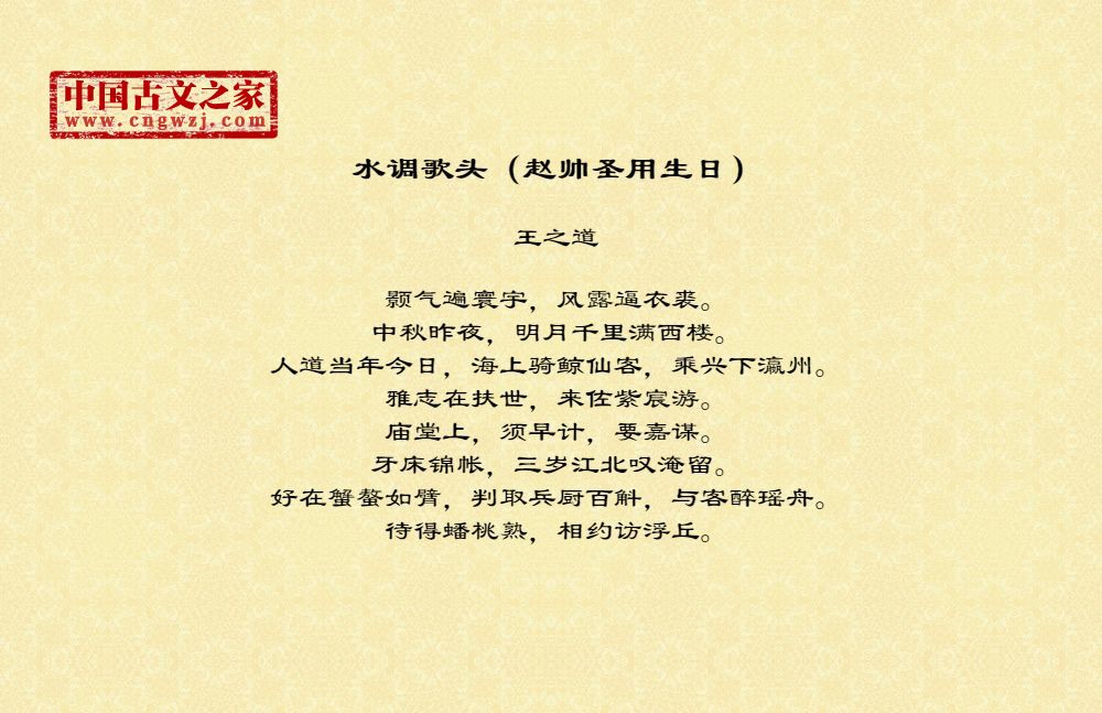 《水调歌头(赵帅圣用生日)》的原文打印版(王之道)