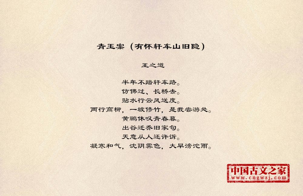 《青玉案(有怀轩车山旧隐)》的原文打印版(王之道)