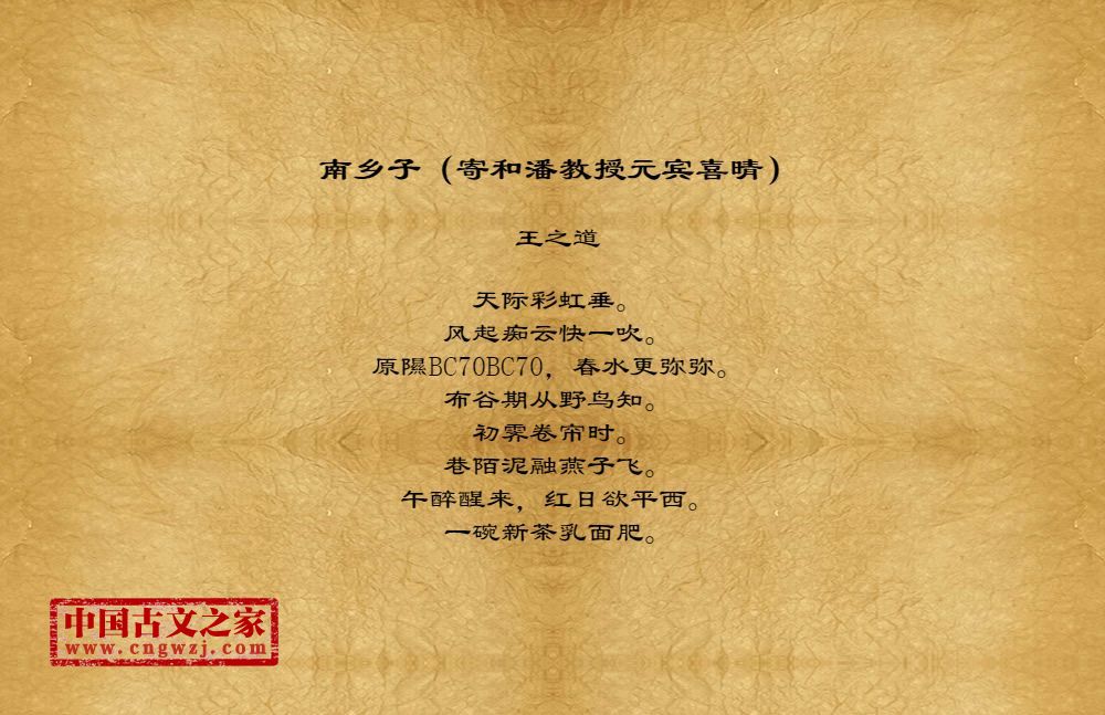 《南乡子(寄和潘教授元宾喜晴)》由王之道创作