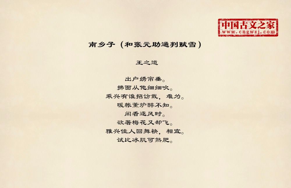 《南乡子(和张元助通判赋雪)》由王之道创作