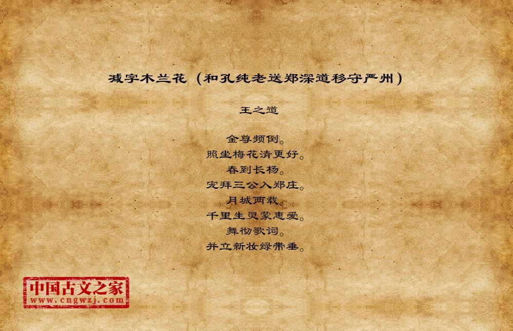 《减字木兰花(和孔纯老送郑深道移守严州)》由王之道创作