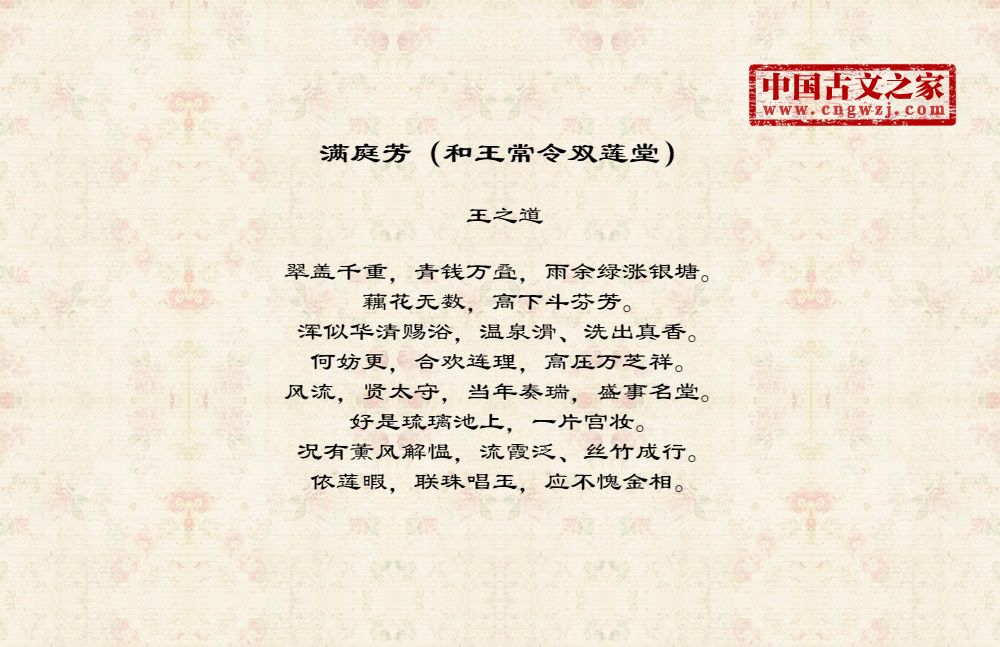 《满庭芳(和王常令双莲堂)》的原文打印版(王之道)