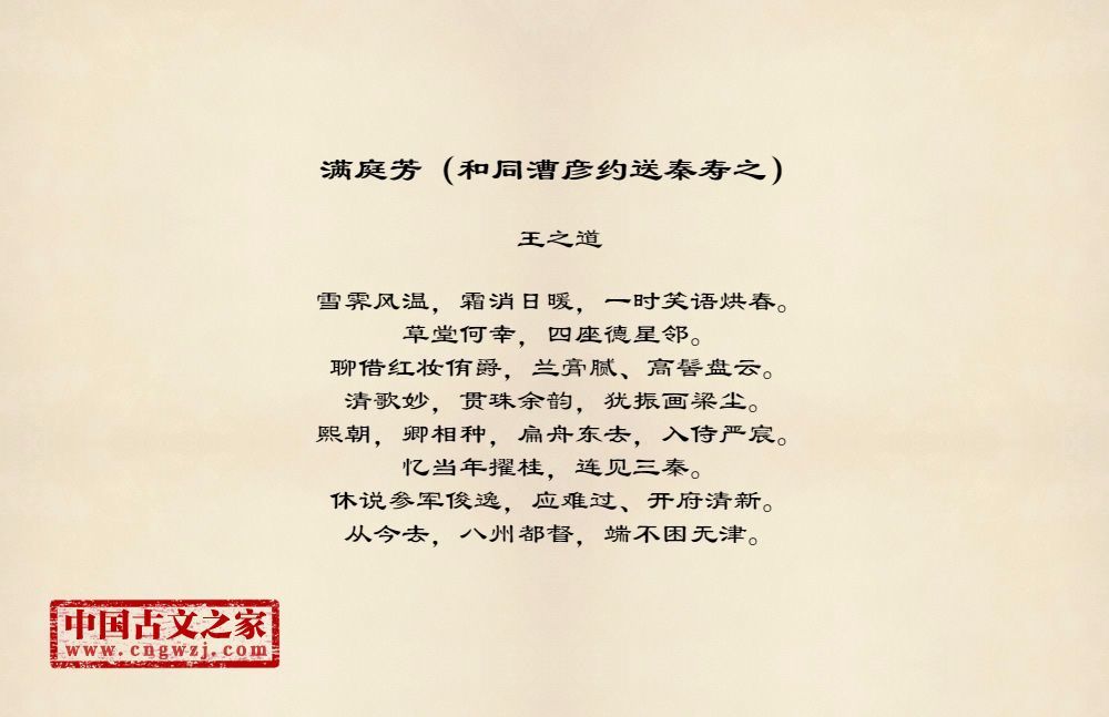 《满庭芳(和同漕彦约送秦寿之)》由王之道创作