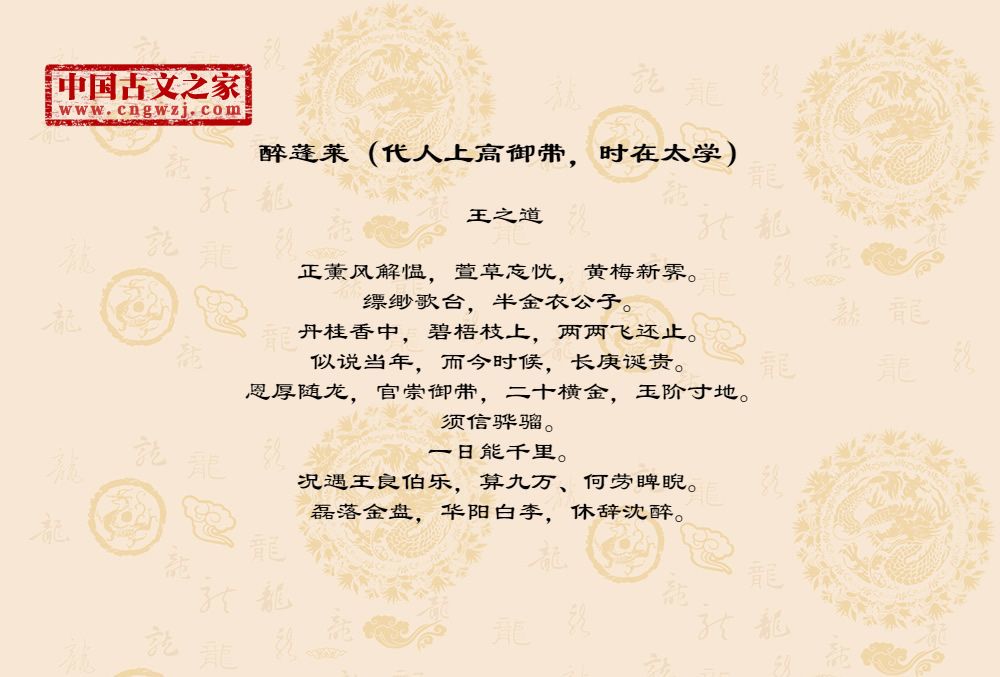 《醉蓬莱(代人上高御带,时在太学)》的原文打印版(王之道)