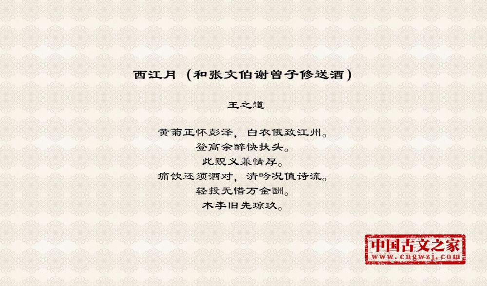 《西江月(和张文伯谢曾子修送酒)》的原文打印版(王之道)
