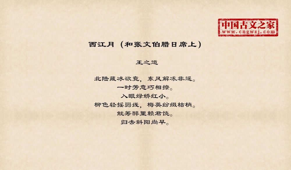西江月(和张文伯腊日席上)
