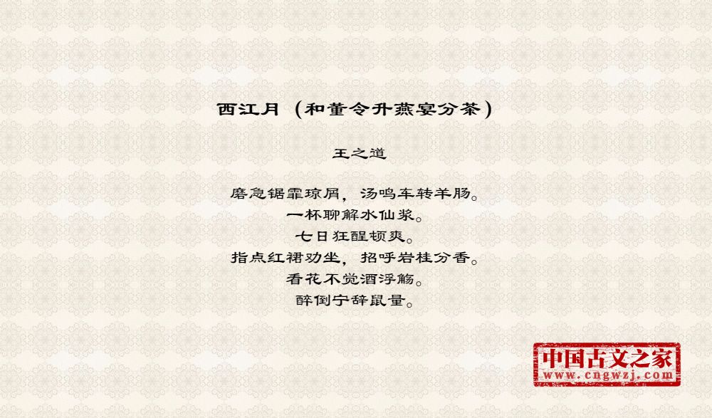 《西江月(和董令升燕宴分茶)》由王之道创作