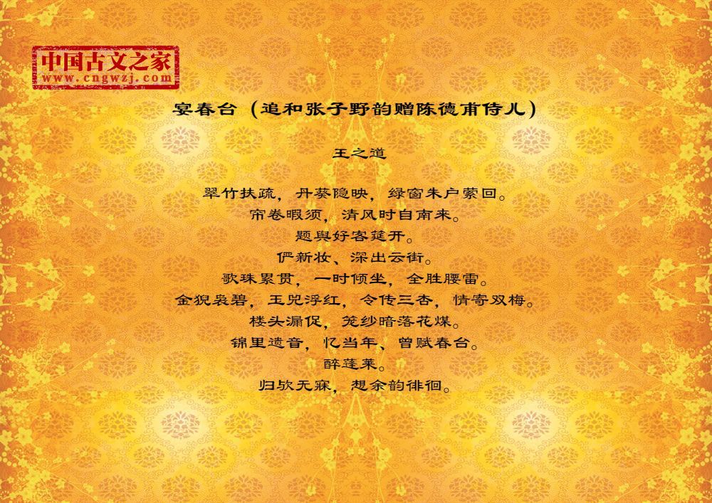 宴春台(追和张子野韵赠陈德甫侍儿)