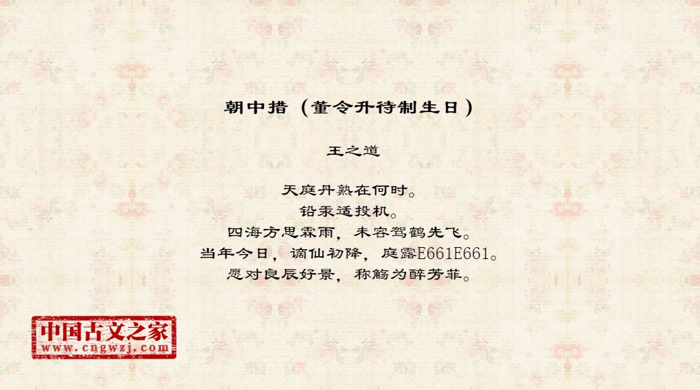 《朝中措(董令升待制生日)》的原文打印版(王之道)