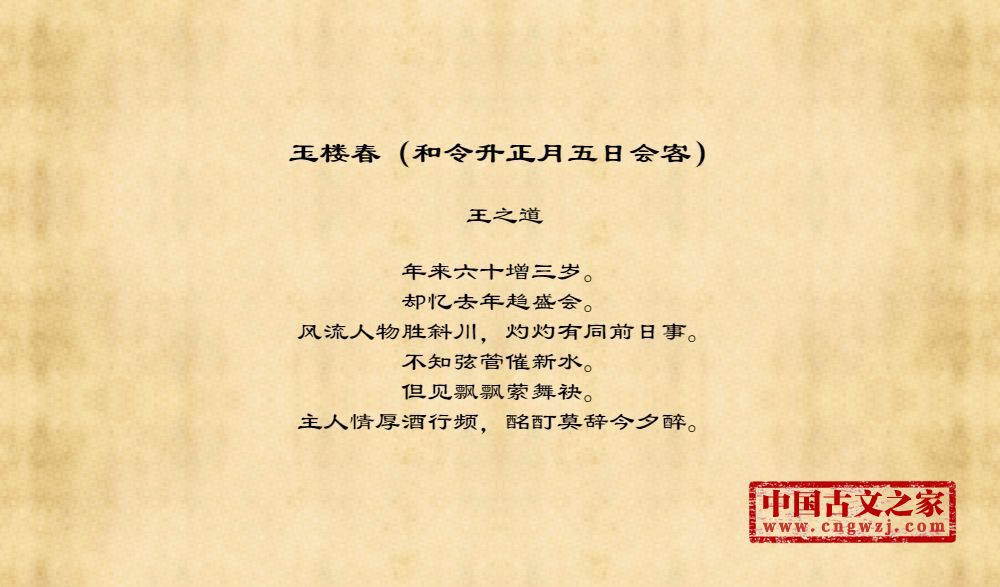 《玉楼春(和令升正月五日会客)》的原文打印版(王之道)