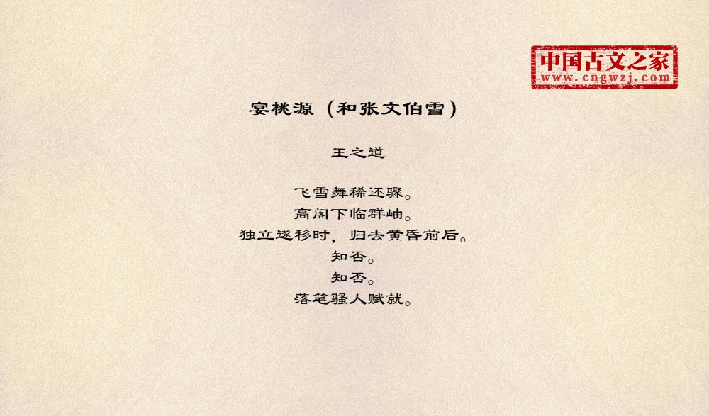 《宴桃源(和张文伯雪)》由王之道创作