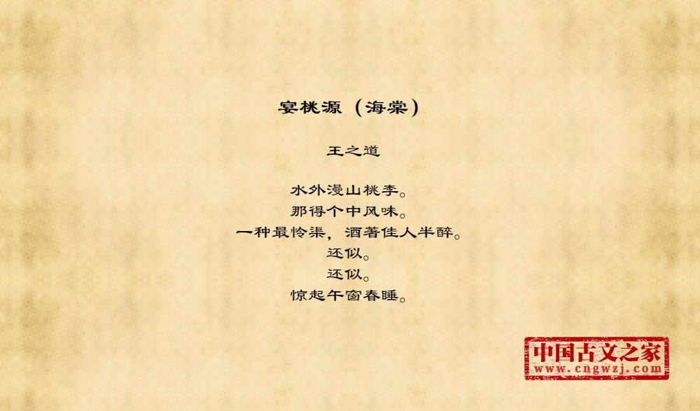 《宴桃源(海棠)》的原文打印版(王之道)