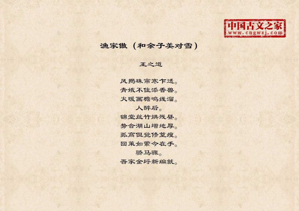 说明:古文之家的工作重心是对古诗文进行校对并注音,我们所提供的译文、注释均来自互联网收集聚合,仅供参考,文章所涉及的字、词发音请以拼音版作为主要参考。
