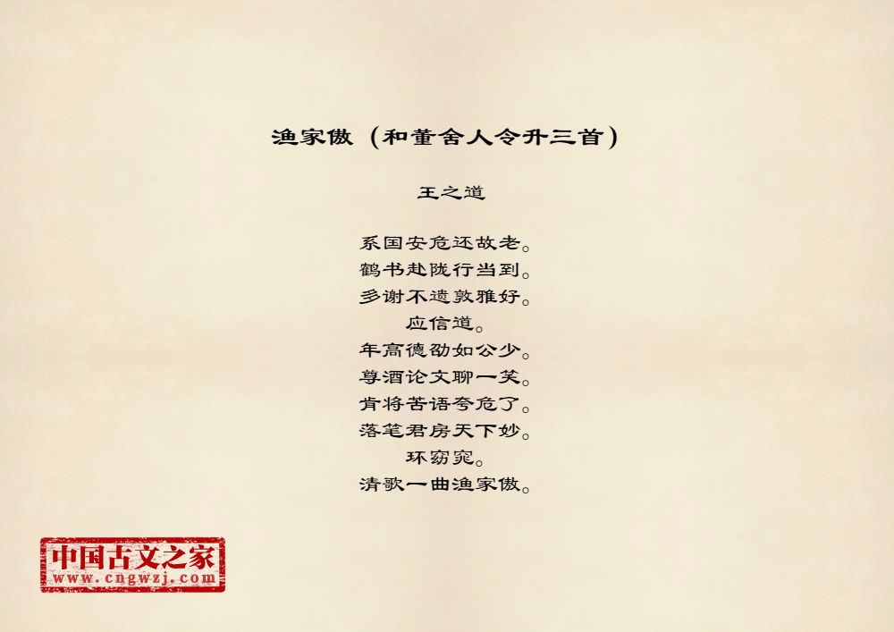 《渔家傲(和董舍人令升三首)》由王之道创作