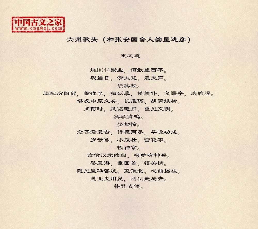 《六州歌头(和张安国舍人韵呈进彦)》的原文打印版(王之道)