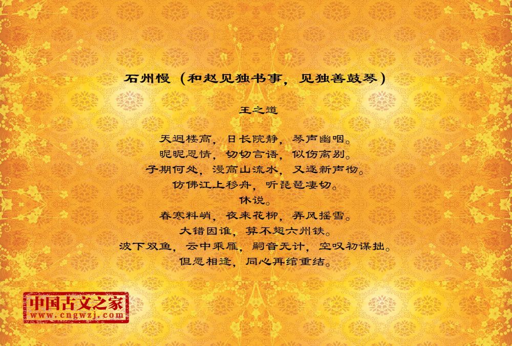 《石州慢(和赵见独书事,见独善鼓琴)》的原文打印版(王之道)