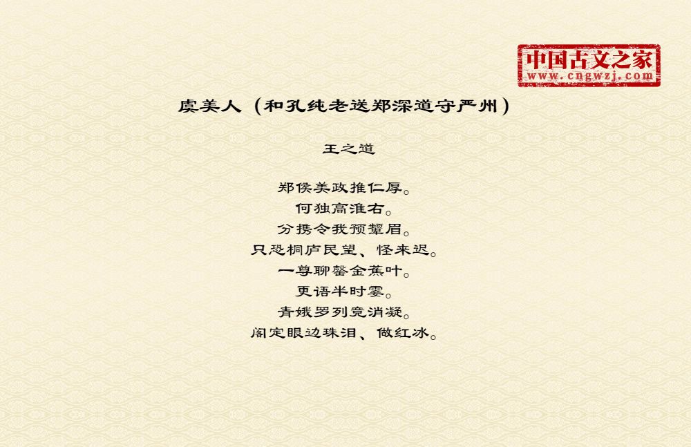 《虞美人(和孔纯老送郑深道守严州)》的原文打印版(王之道)