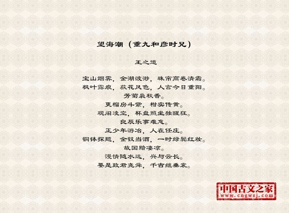 枫叶露痕,荻花风色,人言今日重阳。