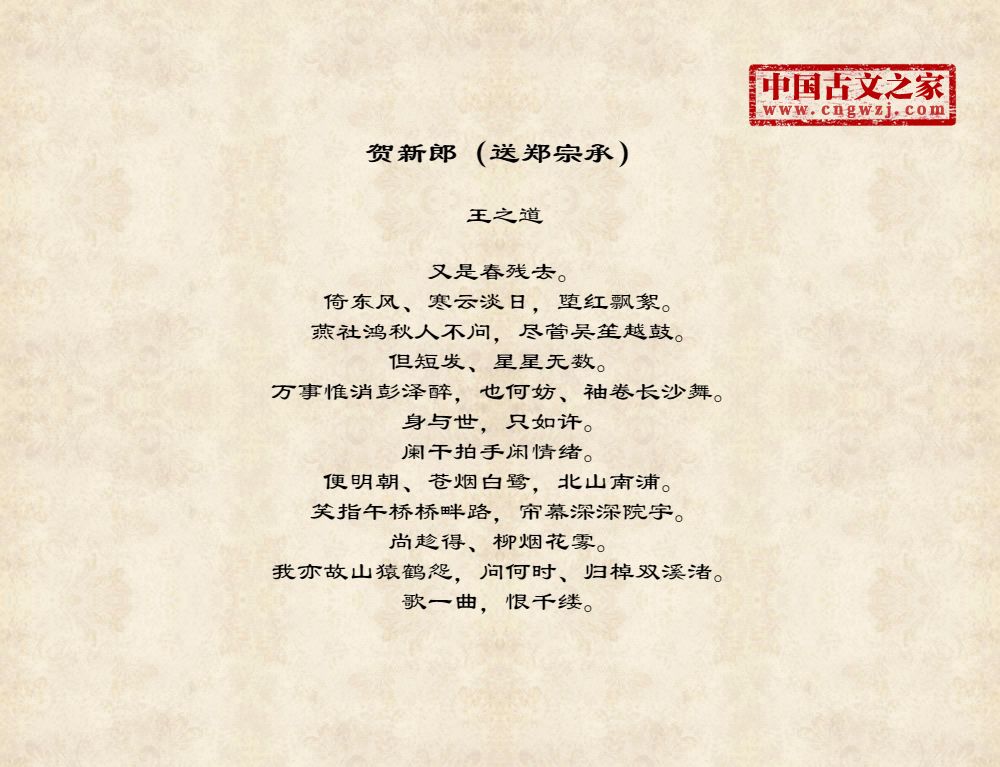 贺新郎(送郑宗承)