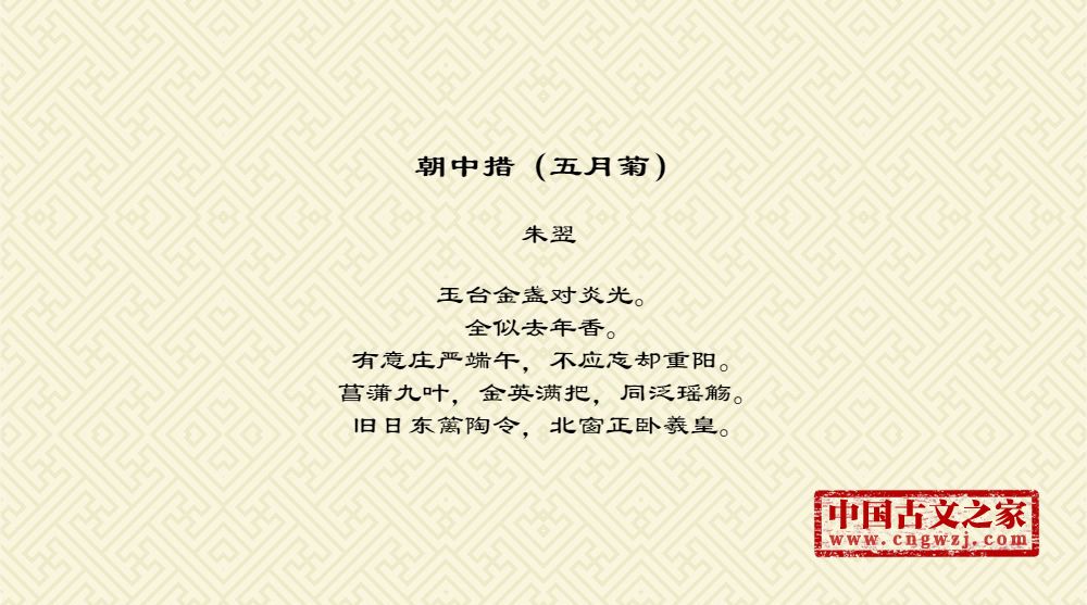 《朝中措(五月菊)》的原文打印版(朱翌)