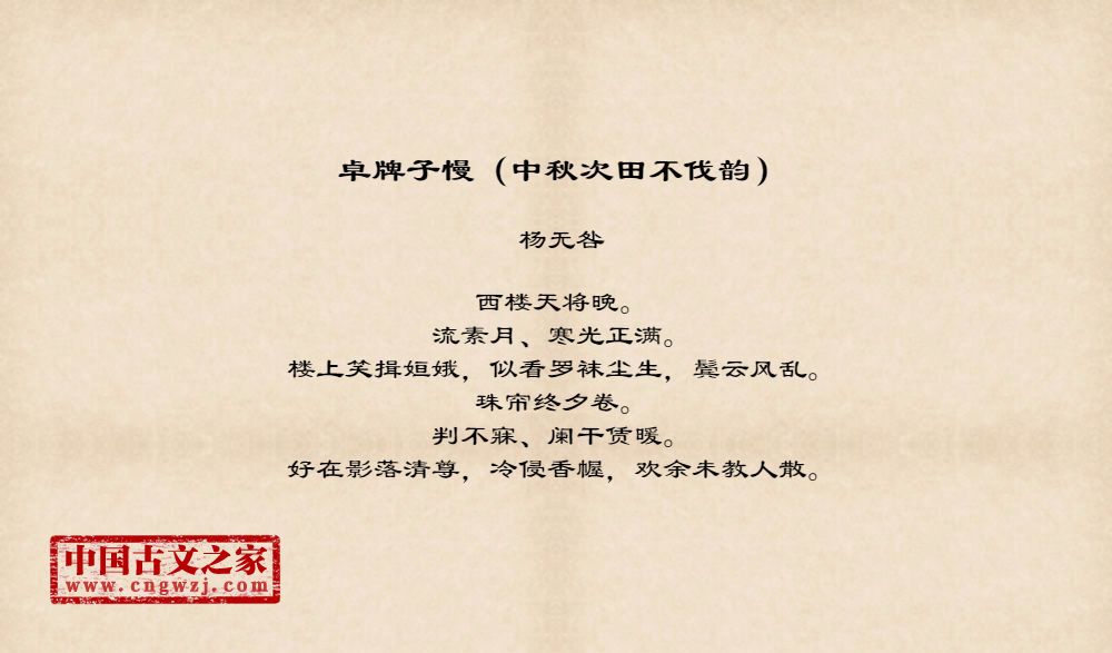 《卓牌子慢(中秋次田不伐韵)》的原文打印版(杨无咎)