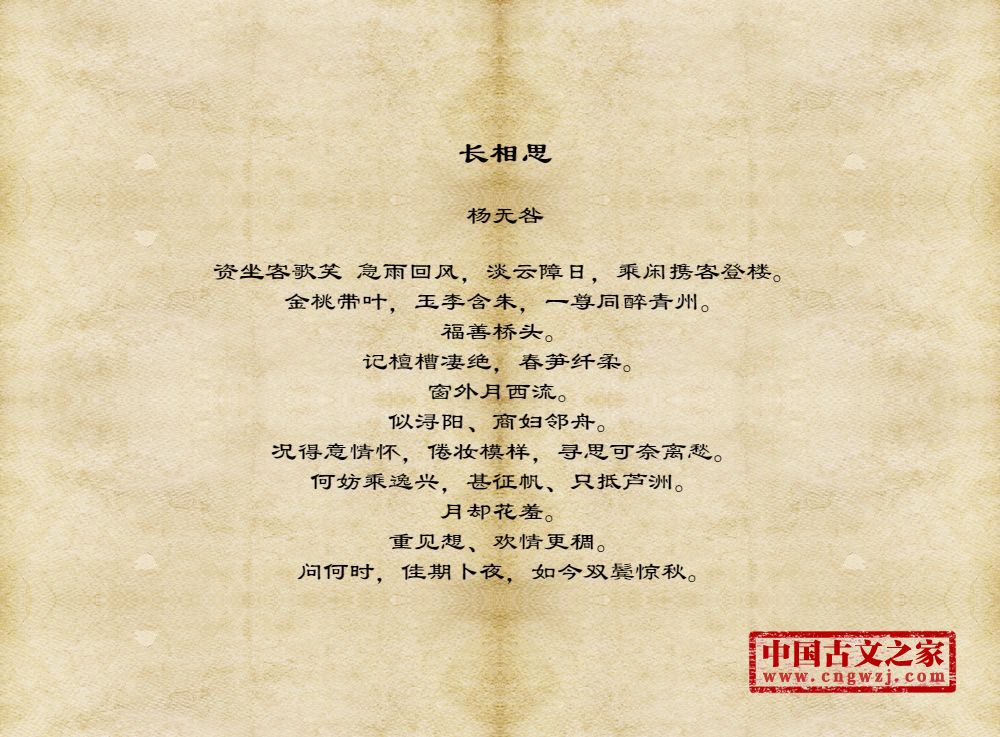 资坐客歌笑 急雨回风,淡云障日,乘闲携客登楼。金桃带叶,玉李含朱,一尊同醉青州。福善桥头。记檀槽凄绝,春笋纤柔。窗外月西流。似浔阳、商妇邻舟。况得意情怀,倦妆模样,寻思可奈离愁。何妨乘逸兴,甚征帆、只抵芦洲。月却花羞。重见想、欢情更稠。问何时,佳期卜夜,如今双鬓惊秋。