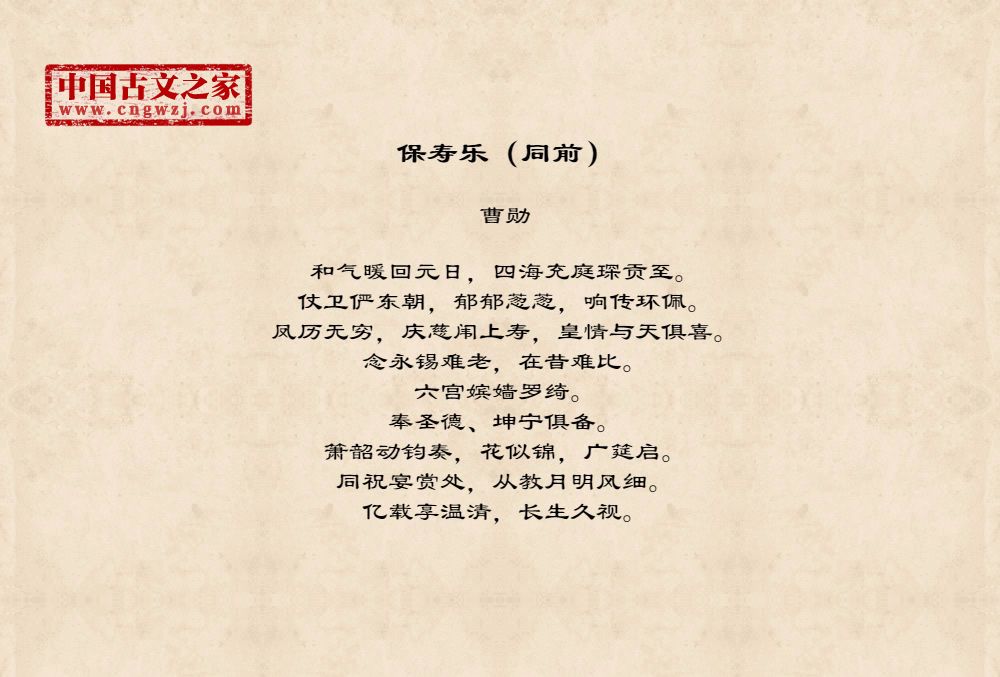和气暖回元日,四海充庭琛贡至。仗卫俨东朝,郁郁葱葱,响传环佩。凤历无穷,庆慈闱上寿,皇情与天俱喜。念永锡难老,在昔难比。六宫嫔嫱罗绮。奉圣德、坤宁俱备。箫韶动钧奏,花似锦,广筵启。同祝宴赏处,从教月明风细。亿载享温清,长生久视。
