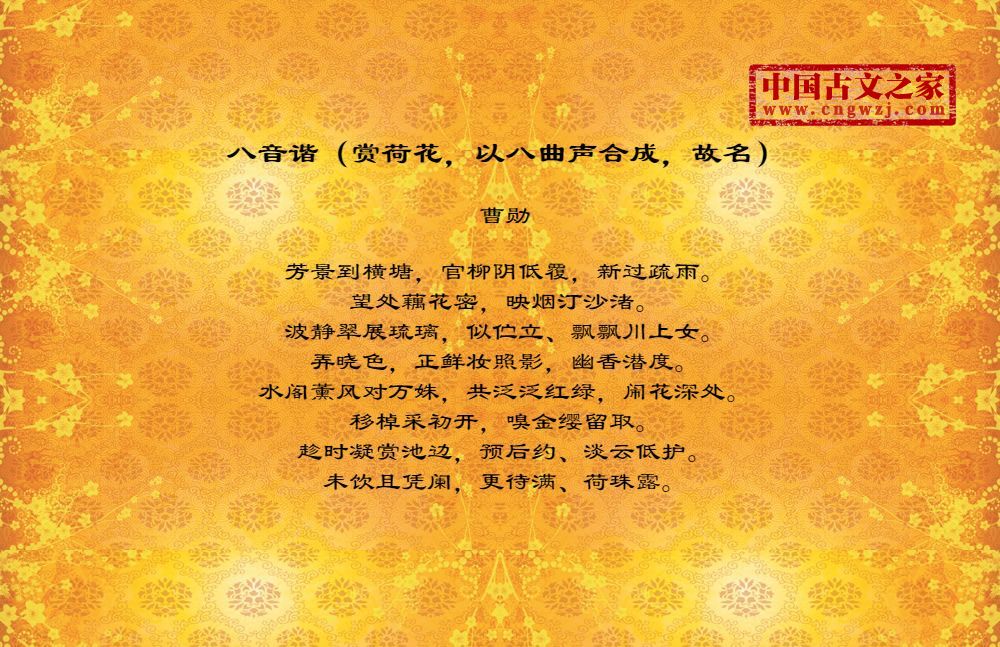 《八音谐(赏荷花,以八曲声合成,故名)》的原文打印版(曹勋)