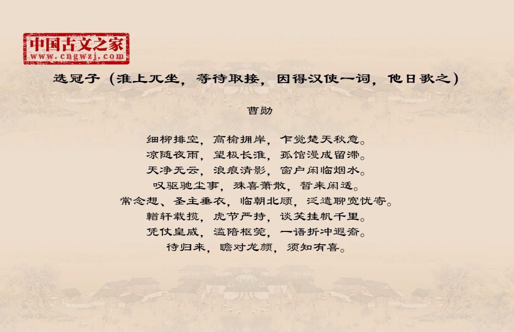 《选冠子(淮上兀坐,等待取接,因得汉使一词,他日歌之)》由曹勋创作