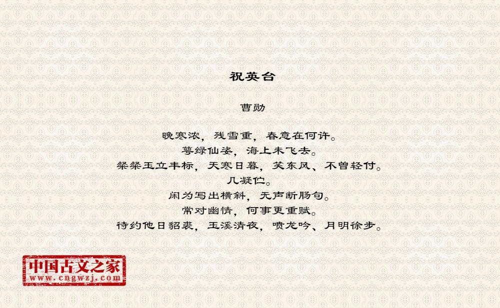 晚寒浓,残雪重,春意在何许。萼绿仙姿,海上未飞去。粲粲玉立丰标,天寒日暮,笑东风、不曾轻付。几凝伫。闲为写出横斜,无声断肠句。常对幽情,何事更重赋。待约他日貂裘,玉溪清夜,喷龙吟、月明徐步。