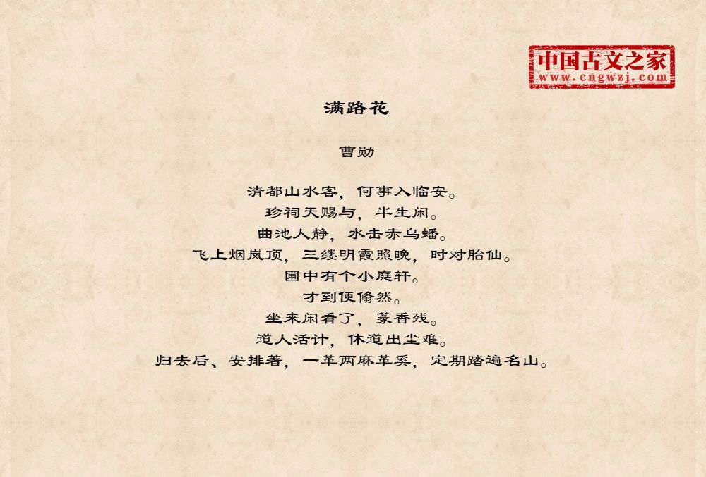 清都山水客,何事入临安。珍祠天赐与,半生闲。曲池人静,水击赤乌蟠。飞上烟岚顶,三缕明霞照晚,时对胎仙。圃中有个小庭轩。才到便翛然。坐来闲看了,篆香残。道人活计,休道出尘难。归去后、安排著,一革两麻革奚,定期踏遍名山。
