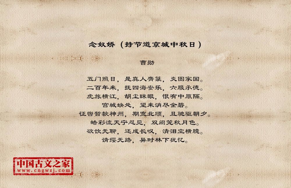 《念奴娇(持节道京城中秋日)》的原文打印版(曹勋)