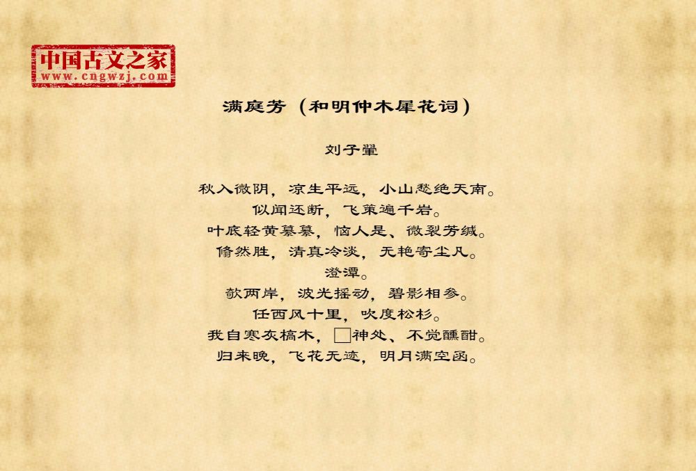 《满庭芳(和明仲木犀花词)》的原文打印版(刘子翬)