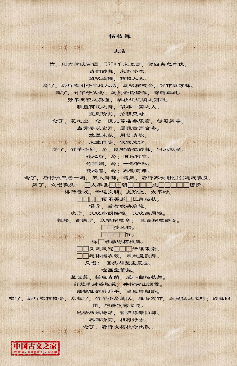 □□□□何不罢岁□征舞柘枝。