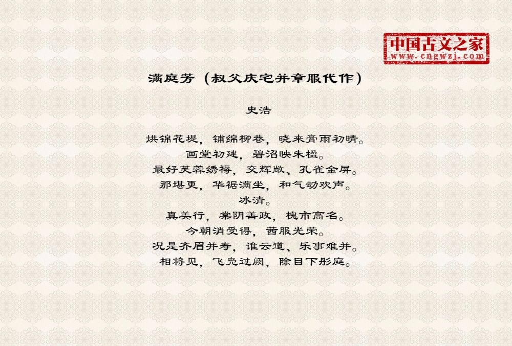 满庭芳(叔父庆宅并章服代作)
