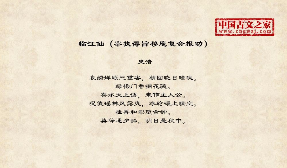 《临江仙(宰执得旨移庖复会报劝)》的原文打印版(史浩)