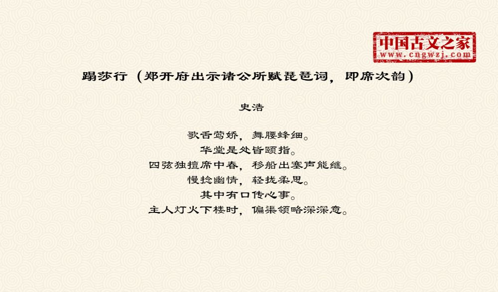《蹋莎行(郑开府出示诸公所赋琵琶词,即席次韵)》由史浩创作