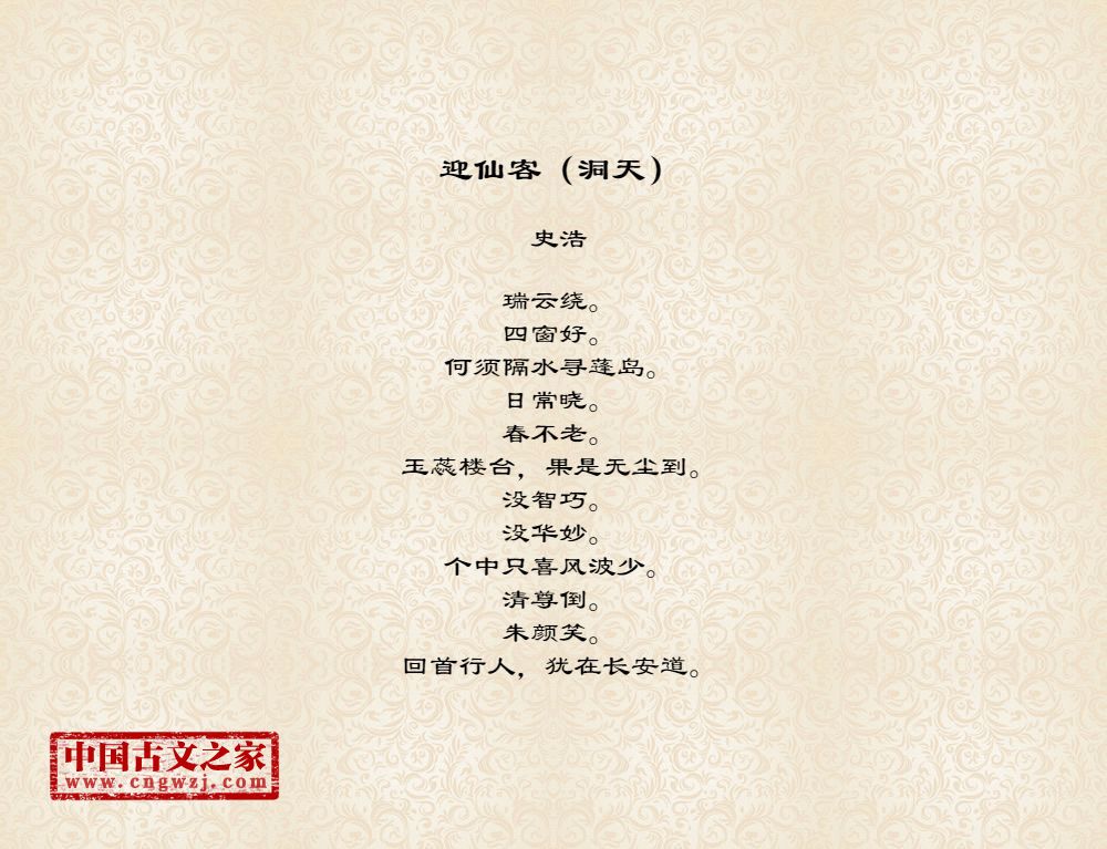 瑞云绕。四窗好。何须隔水寻蓬岛。日常晓。春不老。玉蕊楼台,果是无尘到。没智巧。没华妙。个中只喜风波少。清尊倒。朱颜笑。回首行人,犹在长安道。