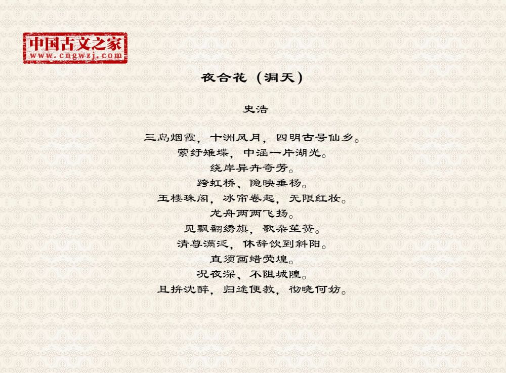 三岛烟霞,十洲风月,四明古号仙乡。萦纡雉堞,中涵一片湖光。绕岸异卉奇芳。跨虹桥、隐映垂杨。玉楼珠阁,冰帘卷起,无限红妆。龙舟两两飞扬。见飘翻绣旗,歌杂笙簧。清尊满泛,休辞饮到斜阳。直须画蜡荧煌。况夜深、不阻城隍。且拚沈醉,归途便教,彻晓何妨。