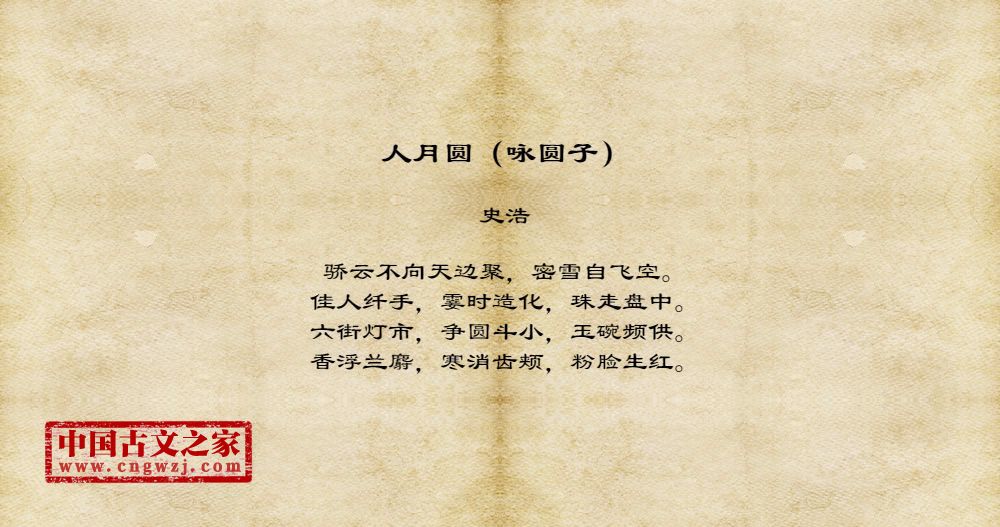 骄云不向天边聚,密雪自飞空。佳人纤手,霎时造化,珠走盘中。六街灯市,争圆斗小,玉碗频供。香浮兰麝,寒消齿颊,粉脸生红。